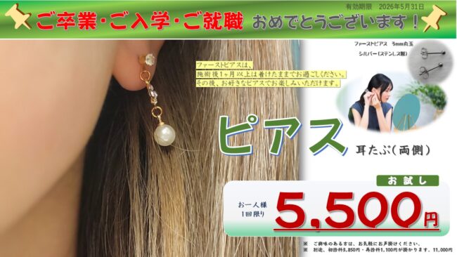 【お試し】ピアス 耳たぶ(両側) お一人様1回限り 5,500円 税込価格