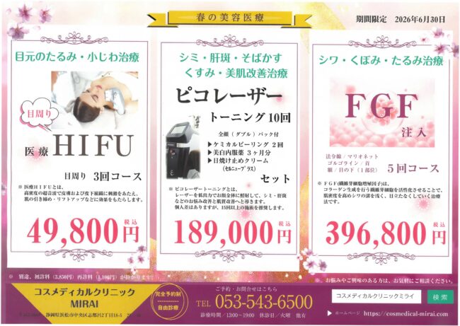 「目元のたるみ・小じわ」「シミ・肝斑・そばかす・くすみ・美肌改善治療」「シワ・くぼみ・たるみ治療」の美容医療